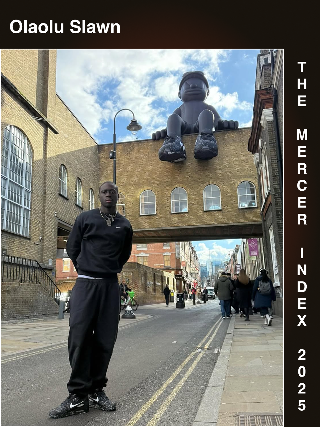 After moving from Nigeria to London, Slawn began working outside formal systems, first through WAFFLESNCREAM and later through painting that leaned into instinct, humor, and disruption rather than polish.